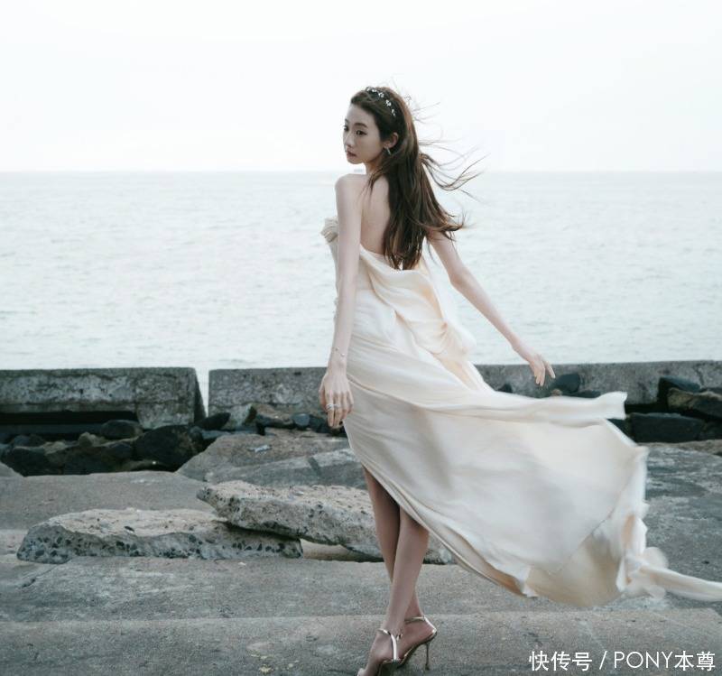 除了棕色系长裙, 换了白色飘逸长裙,搭配金色高跟凉鞋,飘逸如女神降临!